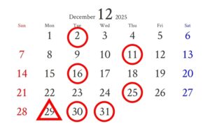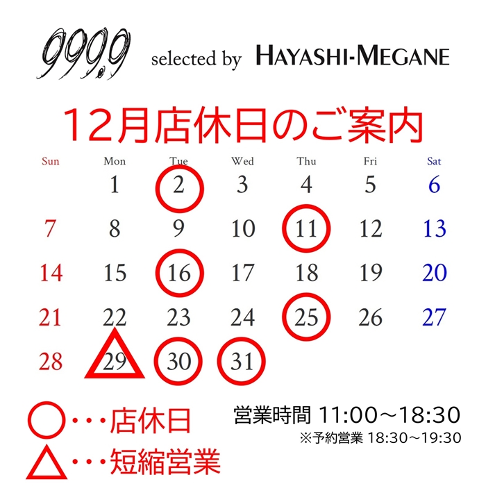 【12月店休日・営業時間のご案内】
